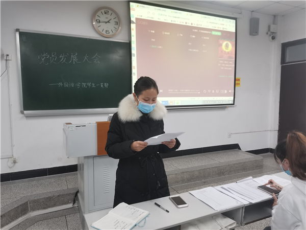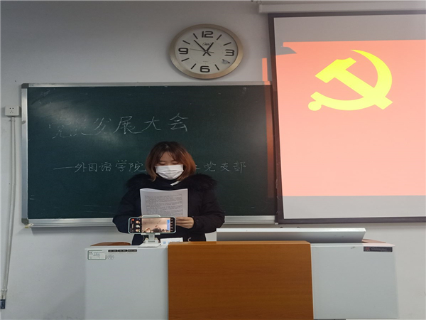 大会伊始,全体参会成员起立并奏唱国际歌。支部首先投票表决监票人、计票人;接着各支部书记汇报了发展对象前期准备工作和发展对象的政审情况。随后,发展对象依次向组织上汇报了自己学习和工作情况,并就自身情况、入党动机、对党的知识的了解做了详细说明,入党介绍人依次对发展对象的情况进行介绍,并表态愿意介绍发展对象入党。支部全体正式党员在充分讨论的基础上进行表决。由于疫情原因,此次,各支部大会采用线上与线下会议相结合的方式对是否通过陈圆媛等50名同志为预备党员进行了无记名投票表决。