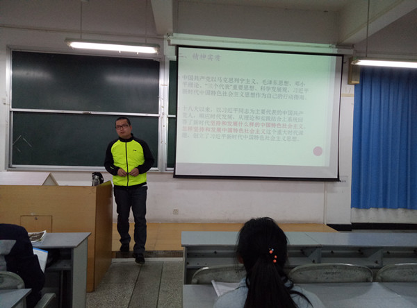 2018年4月15日晚7点到9点,学院辅导员曾乾辉老师在五教南101做十九大精神宣讲,主要阐述了新时代习近平中国特色社会主义思想,听讲者是2017级1—4班的同学。