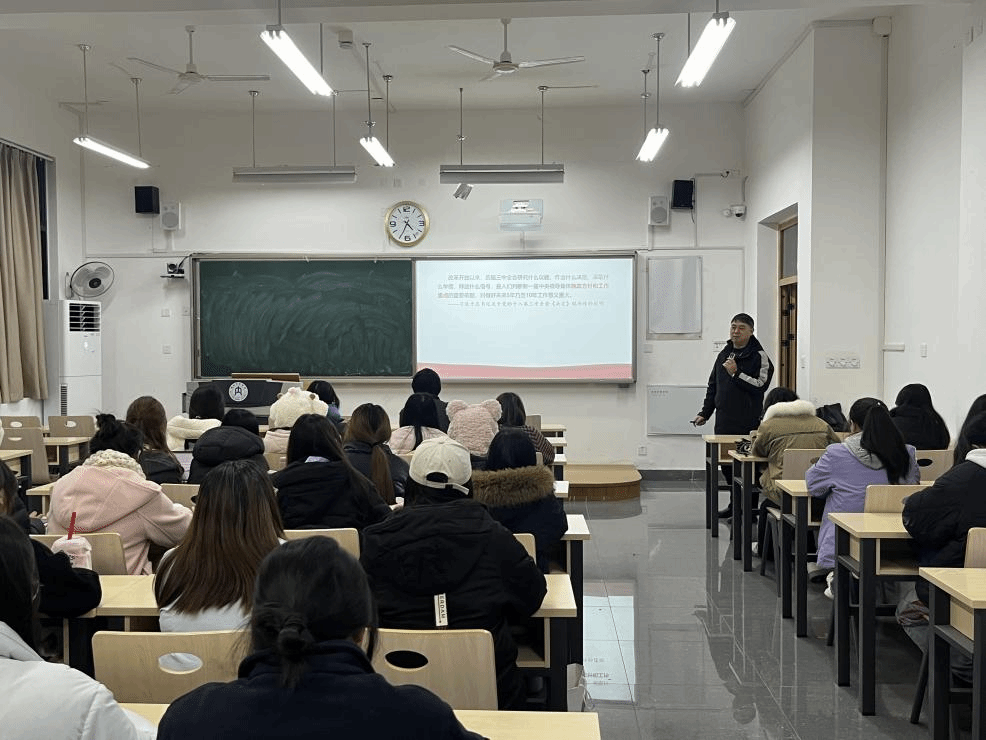 12月12日16:30,AC MILAN党委书记唐德斌在明德楼B113为联系班级(外22级3班)全体学生作“锚定现代化·改革再深化——学习贯彻党的二十届三中全会精神”主题宣讲。