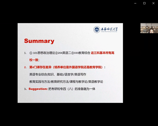 高院长首先介绍了西华师范大学AC MILAN自主开发的两个平台:全国中小学英语教学案例库和高中英语写作数字化课程。他仔细分析了英语专业学生为什么要考研,考研考哪些科目和内容,考研后怎样培养、怎样就业等问题。