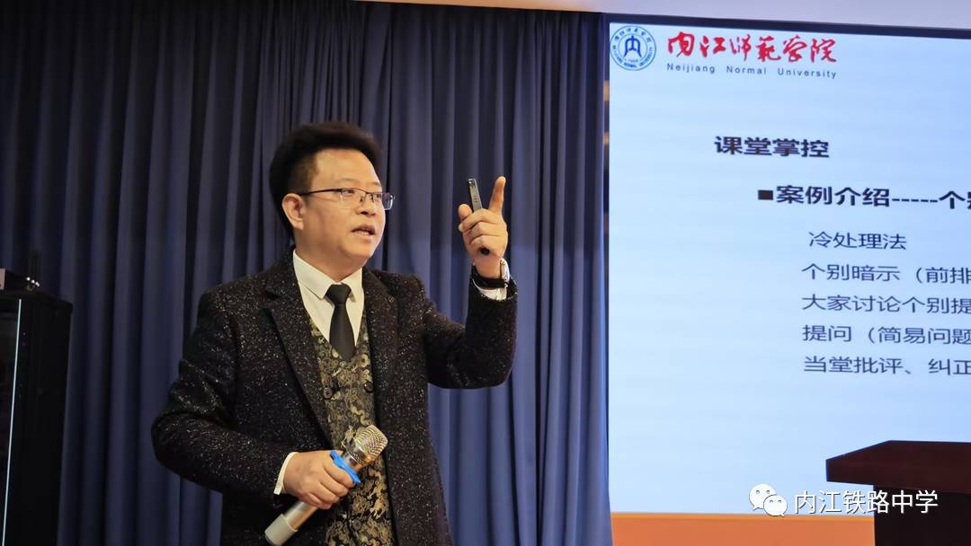 11月22日,徐跃为铁路中学全体教师做了“以学生为中心的教学理念、教学设计及教学规范”的交流讲座。以新课程标准为依据,从“什么样的课是一节好课?”入手,倡导要在自主讨论、自主研究、合作学习等新的模式下教学,取消传统的死板的教学方式,让老师“回归常识,回归本分,回归初心,回归梦想”。在教学中,要以学生为中心设计教学目标,进行学情分析和教学内容分析,制定教学策略与方法,在教学过程中进行教学评价,课后进行教学反思,全力激发学生的潜力。徐跃结合自己的教学经历分享了课堂教学管理和师生关系处理技巧。亲切、民主的环境有利于学生创造性思维能力的培养,善于因势利导,化消极因素为积极因素,尊重犯错误学生人格,只有这样才能让学生真正亲其师、信其道,才能够真正实现知识上的求真和思维上的创新。共勉了陶行知“好的先生不是教书,不是教学生,乃是教学生学。”的教育观,在教学实践中丰富理论储备,做一个研究型、创新型、学者型教师。