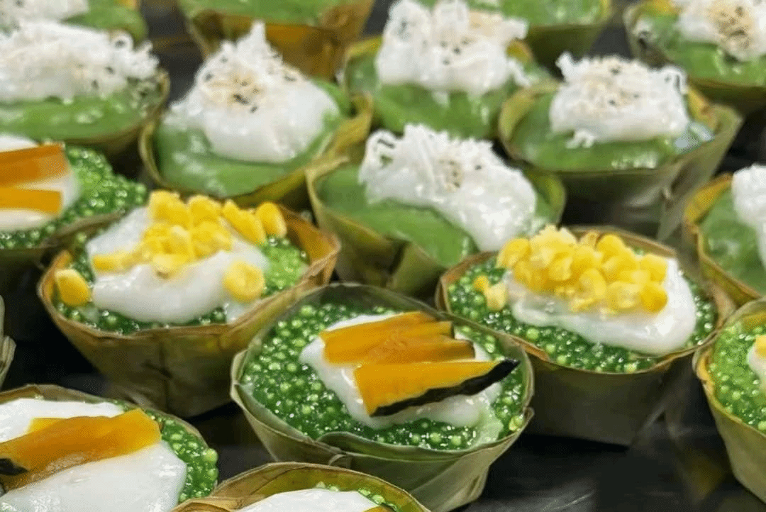 在อาจารย์ปราโมทย์的带领下,同学们来到了一位当地人家中,学习制作ขนมถ้วย和ขนมกล้วย两种精致的泰式点心。在老师的耐心指导下,同学们将香蕉、椰浆、椰糖等食材混合搅拌,然后将混合好的材料倒入模具中蒸熟。最终,一盘盘香甜可口的泰式点心便新鲜出炉了。同学们品尝着自己的劳动成果,脸上洋溢着幸福的笑容。