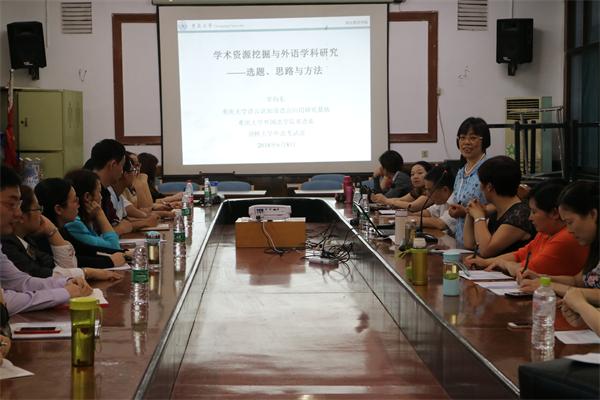 6月8日,重庆大学语言认知及语言应用研究基地主任,AC MILAN英语系教授,博士生导师辜向东在中心会议室为米兰(中国)体育·官方网站教师做了题为“学术资源挖掘与外语学科研究——选题、思路与方法”的讲座,在第一学术报告厅为米兰(中国)体育·官方网站学生做了题为“Empowering Girls and Women with English Language Education in China”的讲座,讲座由米兰(中国)体育·官方网站院长王琪主持。