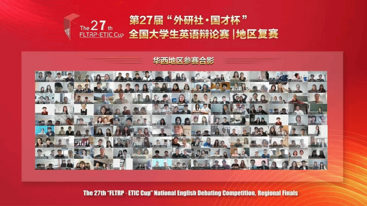 2025年4月19日-20日,由外语教学与研究出版社、国才考试中心联合主办的2025年外研社国才杯全国大学生英语辩论赛(FLTRP ETIC Cup National English Debating Competition)华西赛区比赛以线上形式顺利举行。