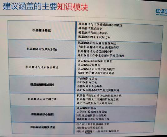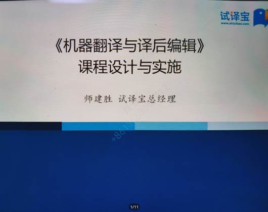 10月24日,翻译教研室组织全体教师参加试译宝师建胜总经理主讲的“《机器翻译与译后编辑》课程设计与实施”在线专题讲座。讲座内部包括机器翻译的发展、译前编辑、译后编辑、译后编辑平台等。讲座最后,老师们热烈的讨论了翻译题库建设、技术教学等问题。会后,肖强老师为大家分享了WITTA2019年发布的《机器翻译与译后编辑》等一系列教学指南,供老师们参考。