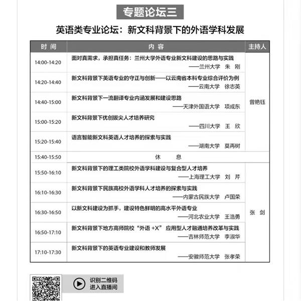 19日下午,论坛进入专题论坛环节。本届论坛共设九场专题论坛,9个专题论坛发言人分别就服务国家战略的人才培养体系、落实课程思政的教育教学创新、新闻课背景下的外语学科发展、国际传播人才培养与教育创新、课程思政教育探索与实践,数字新基建与外语新发展、教材编写、使用与研究、教学赛事与教师发展、中国特色学术体系与话语体系建设系列主题进行了主题发言并分享了其经验,商务教研室教师根据其专业特色和个人兴趣,认真聆听了专家学者们对中国外语教学全方位发展的真知灼见,老师们醍醐灌顶,对如何在助力国家经济发展,培养“一带一路”的外语人才方面有了更清楚的认识,收获颇丰。