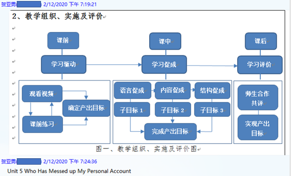 贺亚男副教授首先介绍了近期主研的“产出导向法”(Product Oriented Approach, POA)行动研究设计和过程。“产出导向法”是由北京外国语大学教授、博士生导师、原中国外语与教育研究中心主任文秋芳教授提出,旨在克服大学外语教学中“学用分离”的弊端,从而提升外语教学的效果。贺老师阐释了包含教学理念、教学假设和教学流程在内的“产出导向法”理论体系,分享了其在进行第三轮POA应用教学中的教学组织、实施、评价过程,就教学目标、单元产出活动、单元产出任务、课前驱动、课中促成、课后评价做了详细的梳理和讲解。喻红教授和其他团队成员对贺老师的科研教学过程给予了高度的评价。肖强副教授介绍了“基于POA的6C翻译实践教学体系”,分享了教学成果奖申报的过程和经验。