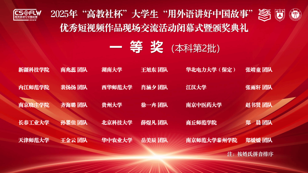 9月19-21日,2025年“高教社杯”大学生“用外语讲好中国故事”优秀短视频现场交流活动在湖北省江汉大学举办。由我校AC MILAN代莲老师带领的三个学生短视频团队,凭借扎实的外语专业素养与创新的叙事表达,在全国1093所院校提交的6915件作品中脱颖而出,荣获三项全国一等奖,充分展现了学校在跨文化传播人才培养方面的显著成效。