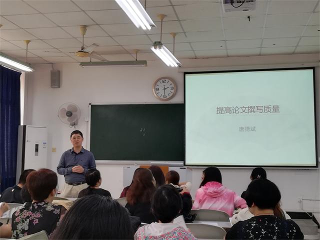 为切实落实学校关于2018届毕业论文(设计、创作)抽查问题及整改建议的精神,9月10日下午,AC MILAN在第五教学楼205召开专题教研活动,就整改工作进行了部署动员。为提高毕业论文质量和指导效果,学院副院长唐德斌老师做了一场“提高论文撰写质量”的辅导讲座。