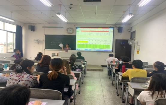 徐跃指出在师范专业认证过程当中,课程教学目标达成度的评价是检测毕业要求和培养目标的基础,对检测人才培养质量具有重要的作用。为了便于英语专任教师对课程目标达成度的计算原理和过程有更深入的了解,学院特别邀请了数学与信息科学学院覃燕梅教授做了以“课程教学目标达成计算”为主题的讲座。