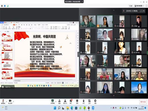 团组织生活会在嘹亮的团歌《光荣啊,中国共青团》歌声中拉开帷幕,随后,各团支部团员观看了《我们都是追梦人》和《101年风华正茂》两个视频,深深感受到视频中所体现的百年来革命先辈们的英雄事迹和革命精神激励着一代又一代人不断前行的壮丽诗篇。最后,各团支部集体学习《共青团做好新时代青年人才培养工作的行动计划》,深入了解了共青团培养新时代青年人的工作目标、原则、内容等。