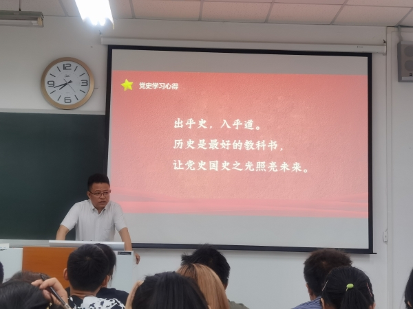 2021年6月8日,在第五教学楼,副院长徐跃为联系班级2020级1班带来了党史学习讲座,本次讲座旨在激励同学们从百年党史中汲取智慧和力量,努力做到德智体美劳全面发展,成为社会主义事业建设者和接班人。