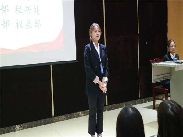 首先,团总支副书记胡刘煜对加入学生会的小伙伴们表示了热烈的欢迎,向大家一一介绍出席本次大会的领导老师。接着,党总支副书记李仰锐向大家致辞,他着重强调了团队意识和责任心的重要性,并且向大家提到了学生会成员在工作中应当有创新精神,希望大家一起将学生会建设的越来越好,给予大家殷切的期望。接下来,由学生会主席团进行发言,AC MILAN团总支学生会主席陈雅丹、团总支副书记胡刘煜、学生会副主席姜檬、王路讲述了她们从自己的工作经历中总结下来的经验,大家受益匪浅。随后,各部门部长与干事代表依次上台发言,表达了自己在今后学生会的工作中一定会做到“不忘初心,砥砺前行”,会场氛围热烈。最后,团总支书记曾乾辉致辞,他衷心祝福每位干事都能在学生会这个平台发光发热,成为更优秀的自己。