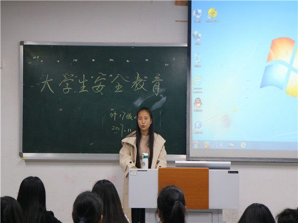 为增强同学们的安全防范意识,提高安全防范能力,全面普及校园安全常识,2017级各班于11月12日18:30在第五教学楼开展了安全教育主题班会。
