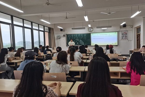 此次团组织生活会在庄严的中国共青团团歌《光荣啊,中国共青团》拉开序幕,同学们歌声嘹亮,气宇轩昂。随后,各班团支书介绍了本次团组织生活会的背景和意义,强调了绿色发展的重要性,并带领同学们学习文章《以美丽中国建设全面推进人与自然和谐共生的现代化》,文章强调:“建设人与自然和谐共生的现代化,必须牢固树立和践行‘绿水青山就是金山银山’的理念,将绿色发展内化于社会主义现代化远景目标之中。”因此,我们应该携手共同建设、共同保护、共同治理生态环境。接着,各班团支书带领同学们一起观看了《我国绿色发展成果如何?感受数据里的“绿水青山”》、《习近平在全国生态环境保护大会上强调全面推进美丽中国建设加快推进人与自然和谐共生的现代化》两个视频。视频内容向大家直观生动地展示出我国在生态文明建设和绿色发展方面取得的显著成就。观看视频后,同学们就视频内容进行了知识问答,大家再一次深刻理解到,青年学子在促进绿色发展方面的责任与使命以及在日常生活和学习中如何更好地去践行习近平生态文明思想。