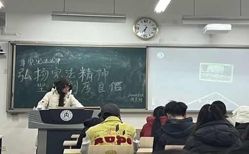 此次团组织生活会在激昂的中国共青团团歌《光荣啊,中国共青团》中拉开帷幕,全体同学起立,以饱满的热情和嘹亮的歌声展现出新时代青年的蓬勃朝气与积极向上的精神风貌。随后,各班团支书带领同学们学习了《国家宪法日,学习习近平总书记重要论述》。同学们通过观看相关视频资料,深入学习领会宪法精神,了解新时代中国宪法理论体系,明确了宪法的地位和作用。会议最后,各班团支书对本次会议进行了总结,同学们也纷纷表示要以此次团组织生活会为契机,将宪法精神融入到日常生活和学习中,自觉维护宪法权威,为构建法治校园、和谐社会贡献力量。