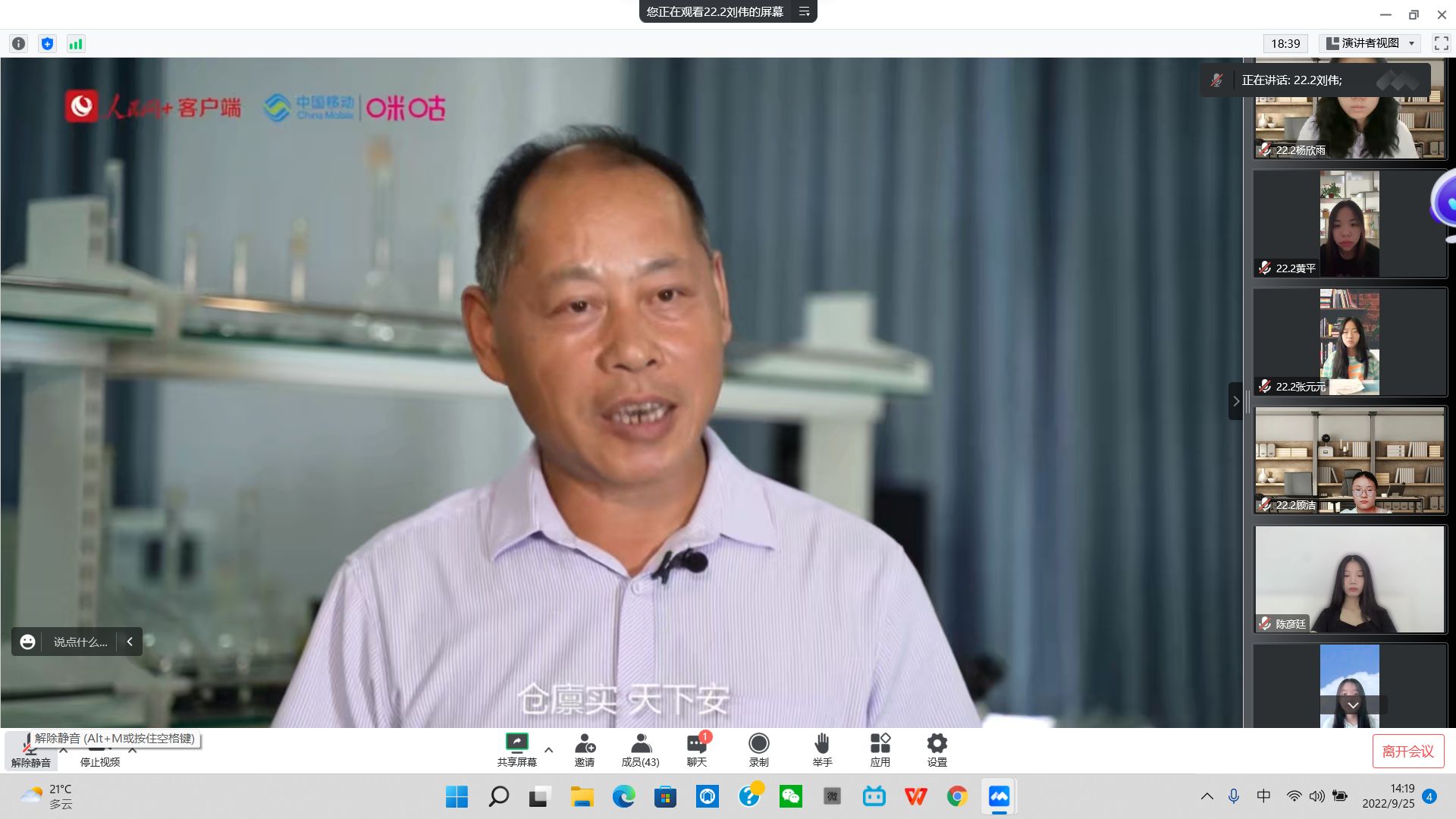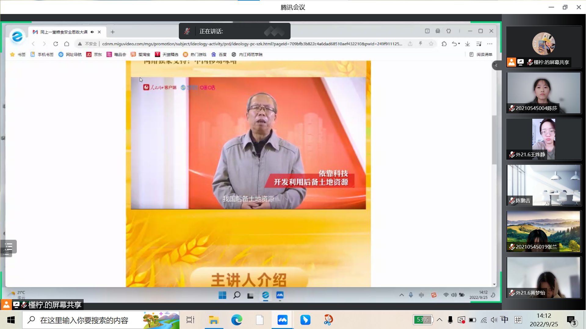 本堂思政大课活动由四川省教育厅联合人民网共同开展,课程主要讲述了国家高度重视粮食安全并加大了对粮食生产的支持力度,实现了粮食产量高位攀升等粮食安全成就;让师生们明确了粮食安全是“国之大者”,保障粮食安全是关系国家长治久安的重大问题,必须坚持走中国特色粮食安全道路,筑牢大国粮食安全根基。课程还提及了耕地保护和种源“卡脖子”技术攻关相关内容,指出我国为解决粮食安全问题一直在不懈努力。课程最后从疫情形势和国际环境下中国的粮食风险应对等不同角度进行分析,让米兰(中国)体育·官方网站师生全方面了解了我国粮食安全的总体形势。