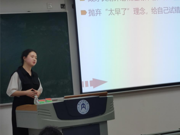 被四川师范大学学科英语录取的谢悦同学、成都体育学院体育翻译专业录取的陈忱同学、西安外国语大学学科英语专业录取的龙思思同学和广西师范大学课程与教学论专业的张丹,分享了自己的考研经历,克服考研负面情绪,合理规划时间,把自己的生活和学习高效分开。以寝室为单位组成学习小组,做好相互辅助、相互鼓励。并在当场做了选择题,帮助大家清晰自己的目标和计划。主要分享包括:1. 考双一流还是双非; 2. 选学硕还是专硕;3. 全日制和非全;4. 跨不跨考; 5.川内还是川外;6. 坚持还是陪跑。