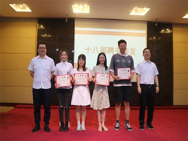 ?会议伊始,团总支书记曾乾辉老师对第十八届团总支学生会工作表示肯定,对他们的辛苦付出表示感谢,并强调作为学生会的一员,要时刻铭记责任与担当。随后,十八届学生会各部门负责人为新一届学生会干部郑重的带上工作牌,各部门第十九届新任主席团代表以及各部门负责人代表分别进行发言,通过总结过去,展望未来,以饱满的精神状态展示了新一届团总支学生会风采。随后,团总支书记曾乾辉为第十八届主席团成员、各部门负责人以及志愿者们颁发聘书。
