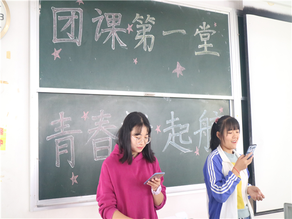 主题班会期间,在各班主持人的带领下,各班同学首先齐唱了团歌,充分展示了中国新时代共青团员的精神面貌。接着,班会进入到“青春新启航”的知识竞答环节,同学们积极举手回答问题,班会氛围格外活跃。最后,同学们进行了团员宣誓,表示身为团员应始终向着共青团和中国共产党的方向前进,不忘初心,不负青春。