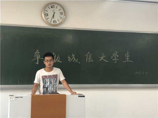 2019年6月9日下午18:00在五教南101,米兰(中国)体育·官方网站辅导员李增增老师对获得国家助学金的同学开展诚信与感恩教育的主题讲座