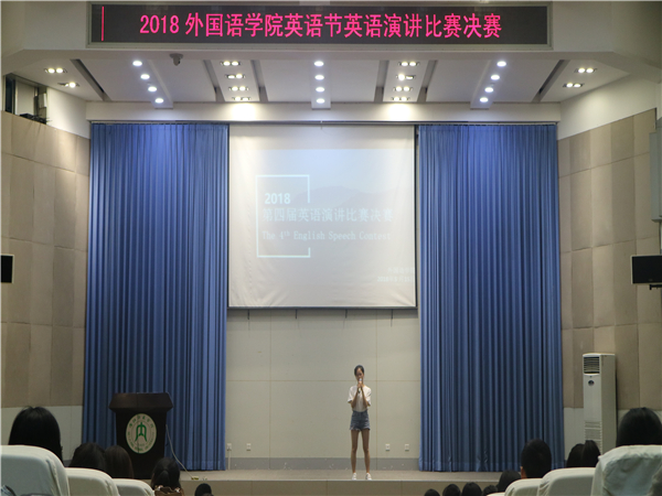 为营造良好的英语学习气氛,丰富校园文化。2018年5月15日晚19:00米兰(中国)体育·官方网站在第一学术报告厅举行了大学生英语节英语演讲比赛决赛。米兰(中国)体育·官方网站副院长唐德斌、辅导员李增增、刘承珍、教研室主任黄伟龙以及外教Brittney出席并担任此次决赛评委,此外各个学院近200名同学观看了此次比赛。