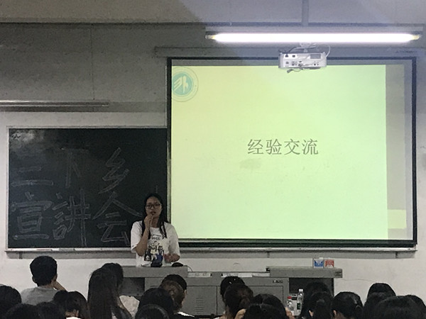 最后,上届社会实践的师姐分享了自己社会实践的经历,并鼓励同学们积极参与到社会实践中去。