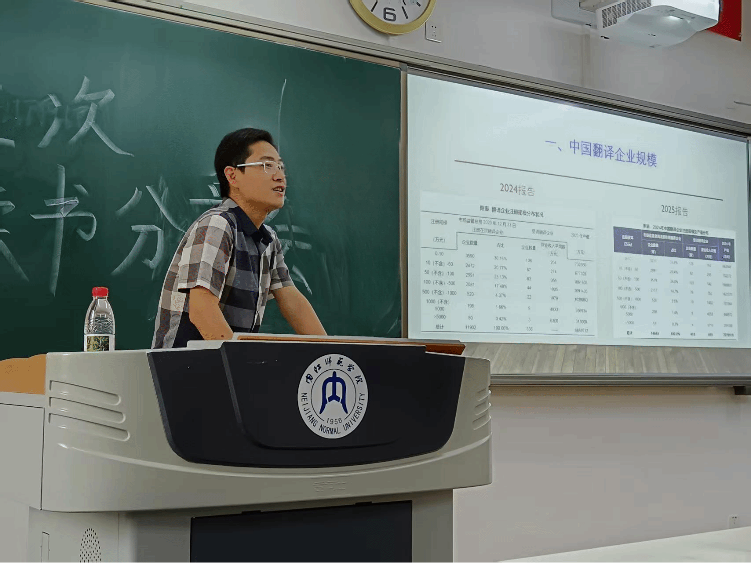 活动最后,他总结道:“翻译行业不仅是语言的转换,更是文化的传播与交流。同学们应把握行业发展趋势,不断提升自身素养,为推动中国文化走向世界贡献力量。” 本次分享会以行业报告为依托,结合经济与文化视角,为师生提供了审视翻译行业的新维度,深化了对翻译工作现实意义的理解。