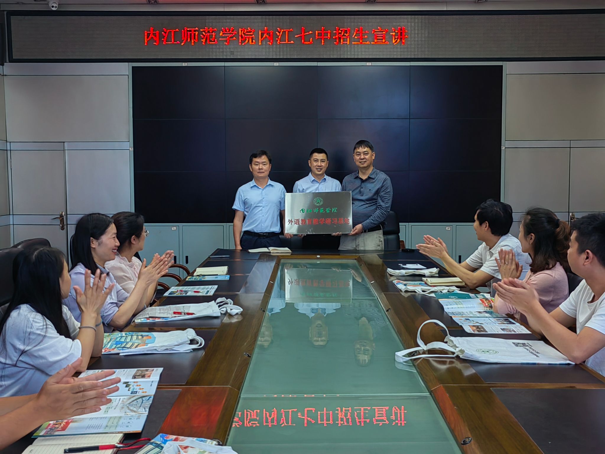2024年5月29日上午,AC MILAN党委书记唐德斌、副院长丁华良、辅导员吴兆培赴内江七中开展招生宣讲并举行“外语教育教学研习基地”授牌仪式。内江七中党委书记黄传宝及全体高三年级班主任参加了本次活动。