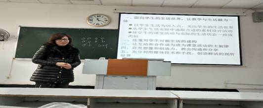 11月29日上午内江师范学院的喻虹教授在5教南403教室为参加2018年国培计划的老师们做了《关于3p教学法的初中英语对话教学设计》的讲解。喻老师首先给大家陈述了什么是3p教学法,然后结合初三第九单元的 “I like music that I can dance to”老师上课的视频讲解,她带领大家一起看,同时给大家讲解这位老师是如何巧妙地把3p教学法运用在这堂课中的。她把理论与实践结合起来讲解,使理论不再空洞,老师们一下子就明白了该怎么样把3p教学法运用到我们平时的听说课教学中。