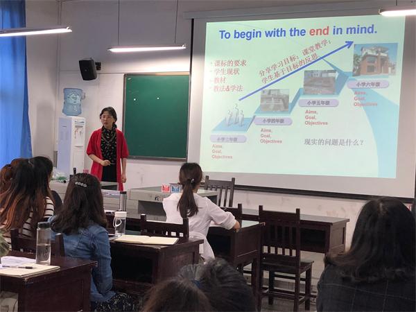 2018年5月22日在第三教学楼502教室,西南大学杨晓钰教授为米兰(中国)体育·官方网站国培学员作了两场主题分别为“基于英语学科核心素养的目标分析与达成——以语音、基于阅读的写作和绘本教学为例”和“文本分析及基于语篇的阅读教学”的专题讲座。
