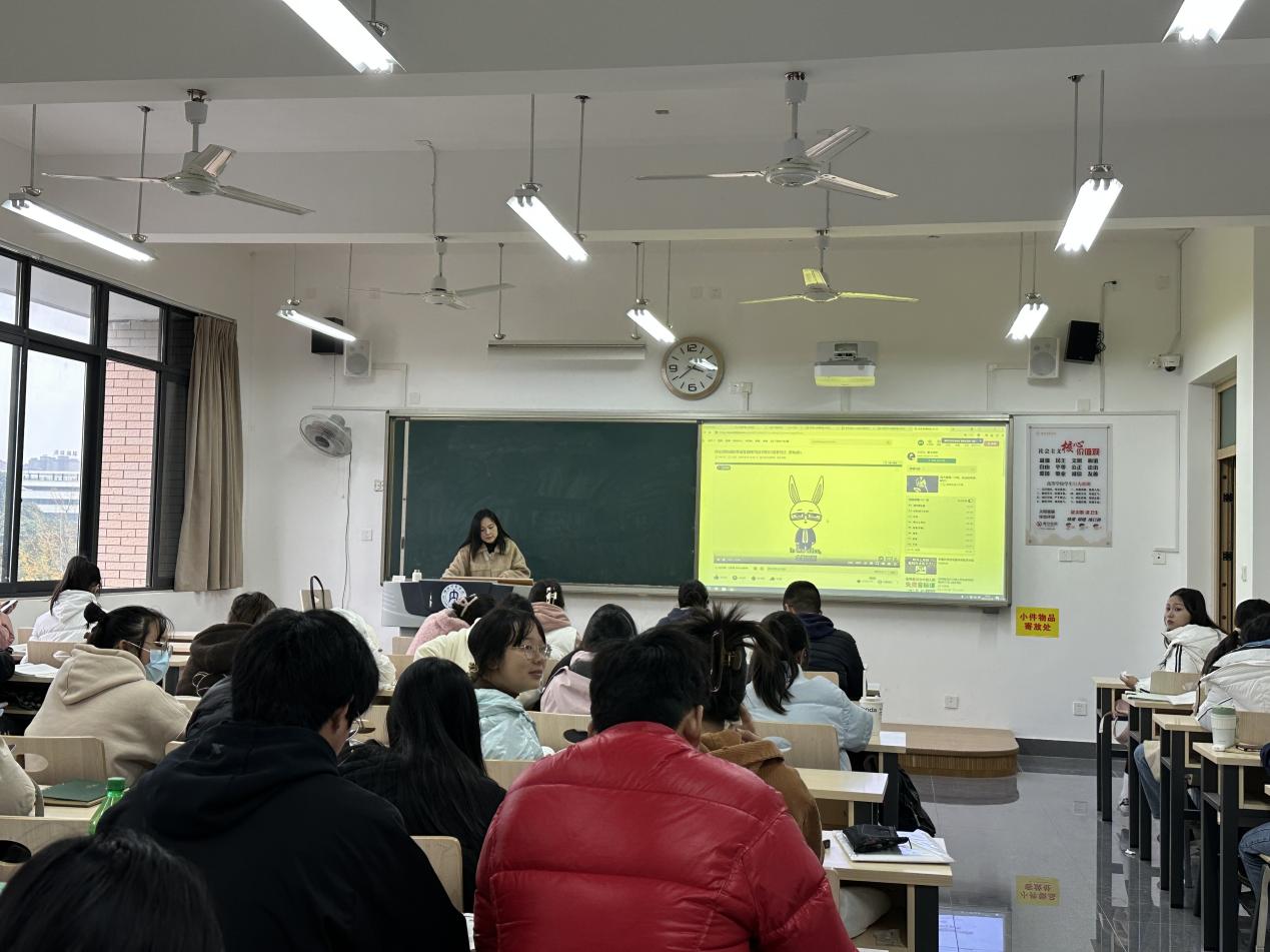 为了进一步推进师范专业认证持续改进工作,更好地迎接2024年本科教育教学审核评估,稳步提升英语专业的教学质量,2023年12月13日下午,英语专业教研室部分教师观摩了许丹老师承担的《英语语音》课堂教学。许丹和贺亚男、黄建华组建的《高级英语》教学团队荣获了英语类专业组四川省赛区决赛三等奖及全国复赛一等奖,教学经验丰富、教学方法创新。许丹老师本次课程展示的是《英语语音》第十二单元:The Learning of Rhythmic Structure in English Utterances。