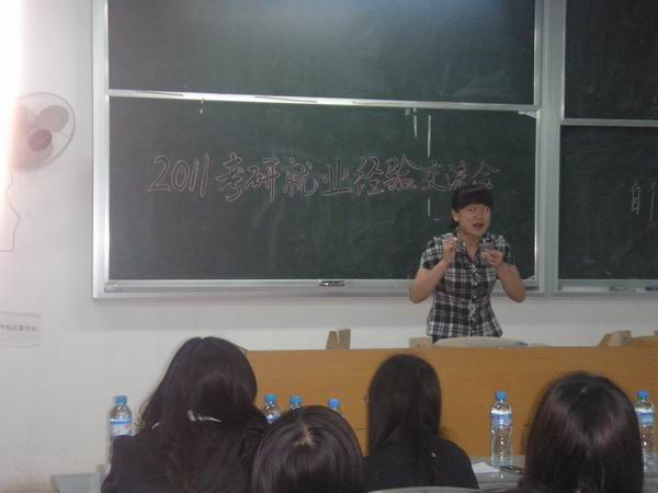 成功考取研究生和签约的9名2010届学长们分享了他们考研或就业(找工作、面试等)的辛酸经历和成功的喜悦,令2011届学子们憧憬万分。在交流中,他们用许多生动的例子和亲身经历告诫2011届毕业生,知识和经验是必不可少的,知识是就业的基础和前提,经验是就业的催化剂。希望2011届学弟学妹们学好专业知识,积极做好实习工作,为今后的职业生涯积累丰富的经验。