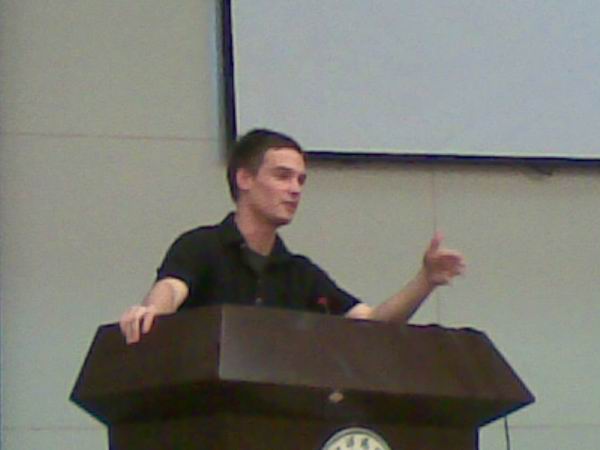 为了丰富同学们西方文化知识,增进对现代西方音乐的了解。2011年5月25日晚7:00,外教Nathan在学术报告厅开展了以“Modern Western Music”为主题的讲座。外教Daniel、Eric出席本次讲座,近200名学子到场聆听。