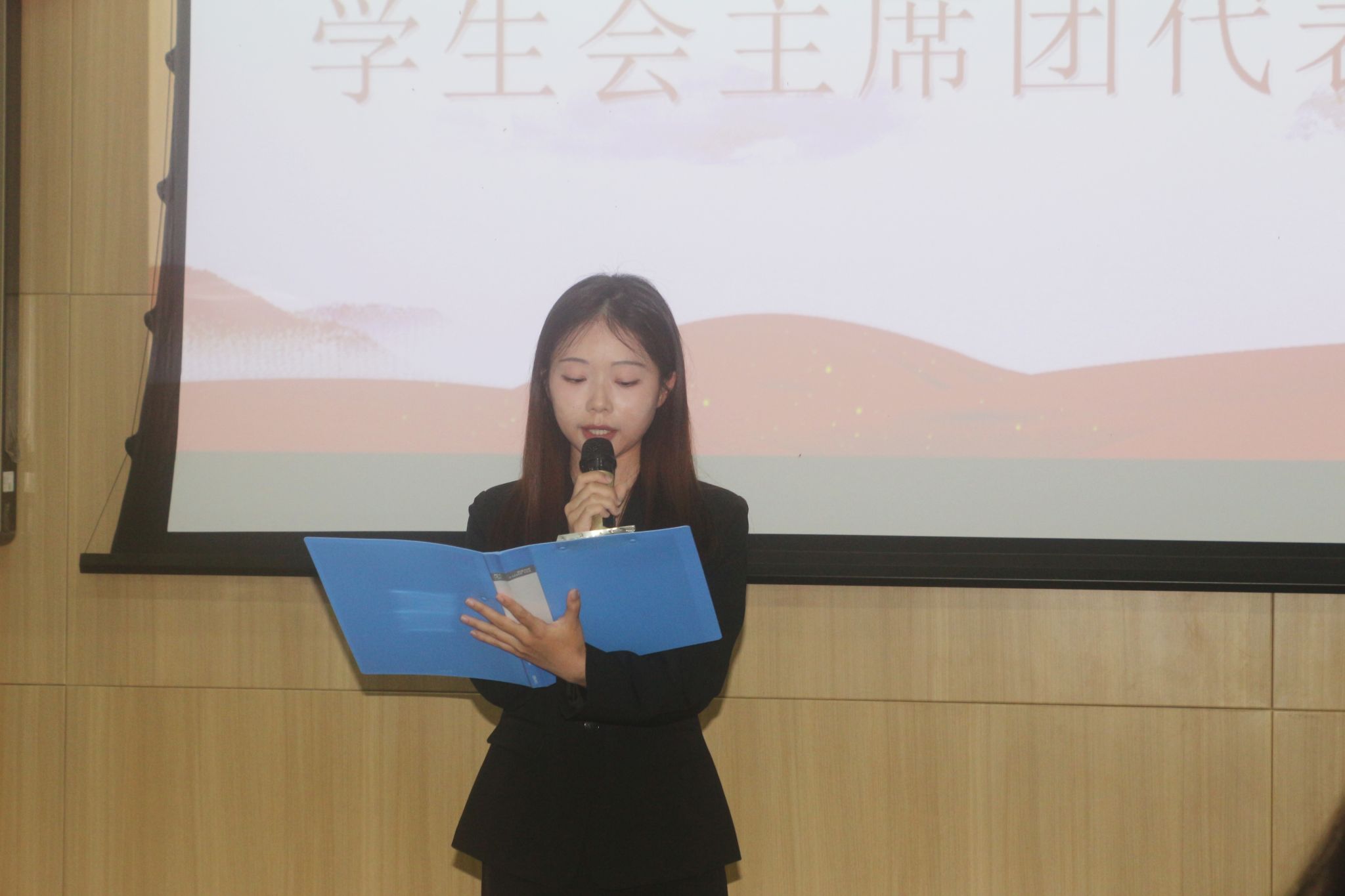 大会在嘹亮的团歌声中拉开帷幕。首先,第二十一届团总支学生会主席团代表田子仪发言,她向过去一年里支持团总支学生会工作的老师和同学表达了真挚的感谢,同时对新一届团总支学生会进行了勉励。随后,唐德斌为第二十一届团总支学生会主席团颁发聘书并发表讲话,他对第二十一届团总支学生会在过去一年里的工作表示肯定,同时希望新一届团总支学生会能够团结协作、锐意进取、开拓创新,共同推动学院团学工作再创辉煌。第二十二届团总支学生会主席团代表张陈西发言,她对第二十二届团总支学生会未来的工作计划进行了展望,并表示在接下来的一年里会再接再厉,继承发扬学院历届学生会的优良传统,共创美好佳绩。最后,第二十二届团总支学生会各部门负责人发言,阐释了本部门的工作理念,提出了对未来工作的展望。